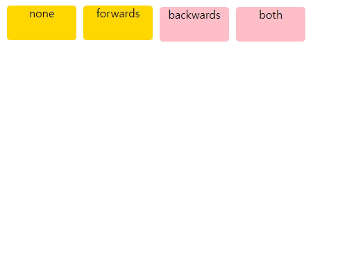(마지막 재생이 정방향 재생 시 : 100% or to / 역방향 재생 시 : 0% or from) - backwards : (전) 첫 번째 keyframe에 정의된 값 (후) 기본값